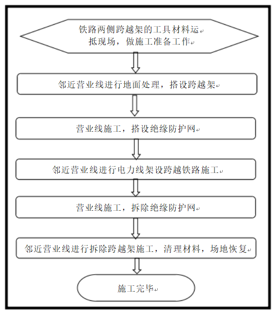 铁路东侧跨越架尺寸:14.4m(长)×12.6m(宽)×19.5m(高);铁路西侧跨越架尺寸:14.4m(长)×14.4m(宽)×22.5m(高),封网由5根φ16迪尼玛绳作为承力索,由5 根φ12 迪尼玛绳作为拉网绳,铁路上方按照每排间隔2m的搭设方式进行封网,则本次铁路上方封网共需15m 绝缘杆19 排,自闭线上方按照每排间隔2m的搭设方式进行封网,则本次自闭线上方封网共需15m绝缘杆4 排。因此,本次封网共需15m 绝缘杆23 排。